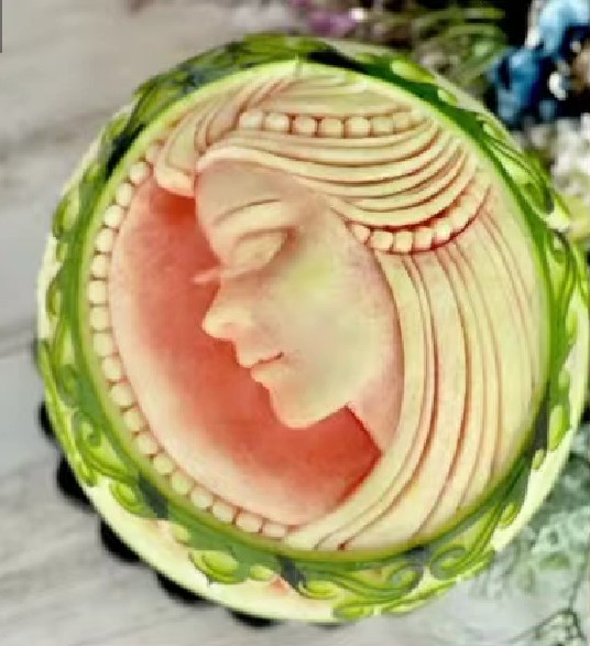女性の横顔を彫った後、縁のデザインの彫り方を紹介します。